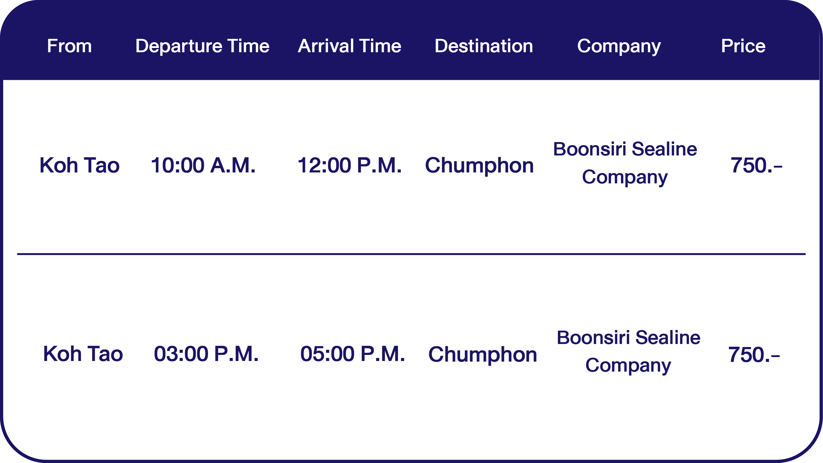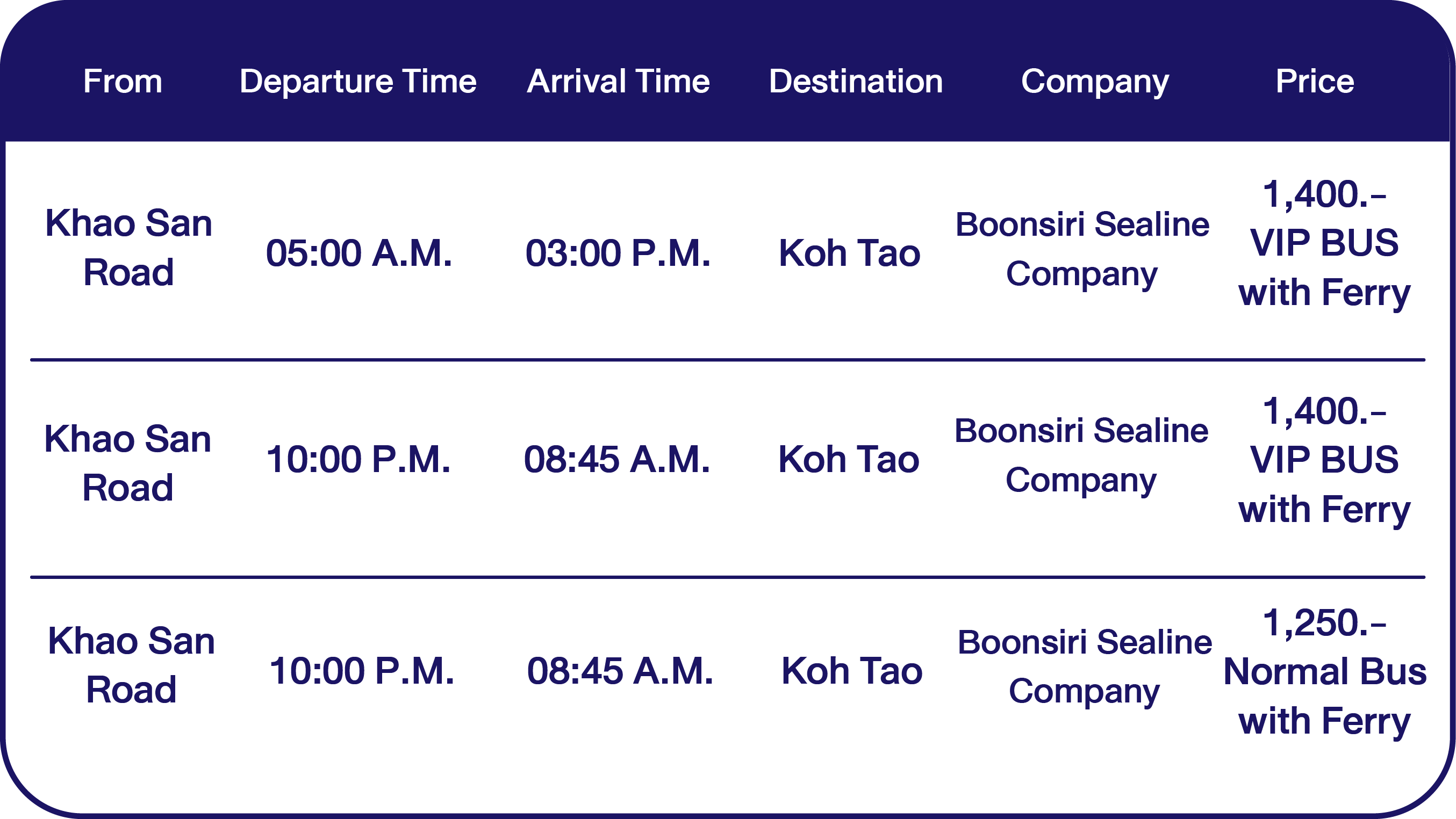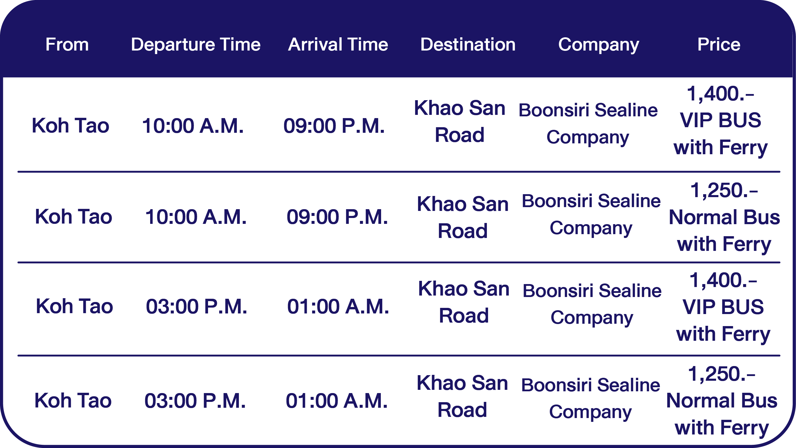 Updated 2026 schedule for Boonsiri Sealine to Koh Tao.